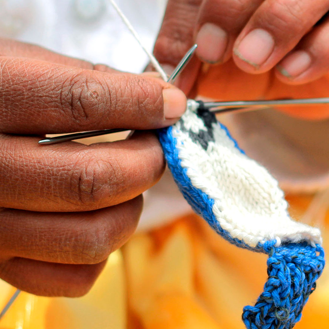 In the Andes of Peru, by Lake Titicaca, knitting warm clothing is an ancient tradition. Mothers would also often knit toys for their children. Knitters may work from home or in their fields while they care for their young and tend their family farms.