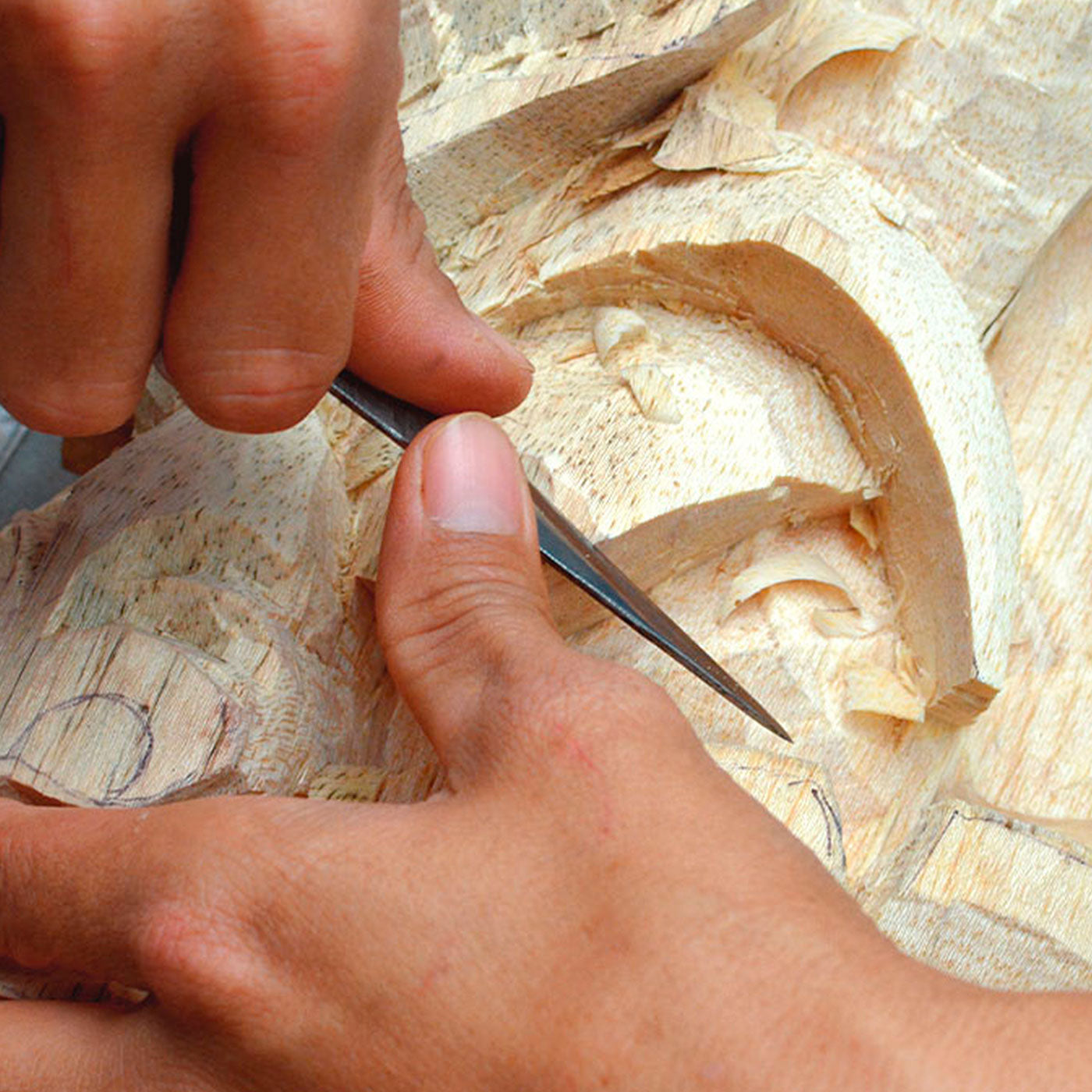 During the 1980’s, many young Borucans left the village in search of jobs. To prevent younger generations from losing their cultural roots, artist Don Ismael Gonzalez trained a group of eleven to twelve year-old boys in traditional mask-making. Later, some of these students were invited to the capital to study art and painting while others remained in Boruca to attend high school. For several years this group continued working in Ismael’s workshop, developing their carving and painting skills.