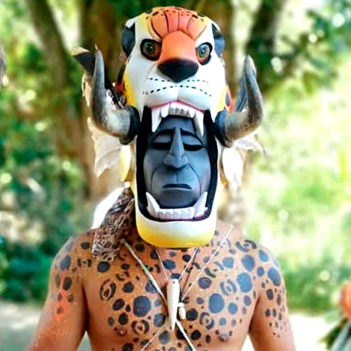 500 years ago, the Spanish came for our land and gold, enslaved many of our ancestors, and killed thousands. Our people retreated to a bowl in the highlands in Southwest Costa Rica to what is now known as Boruca. There, brave Brunka warriors, wearing masks of nature spirits, frightened the invaders who called us “Diablitos,” or Little Devils. Thanks to those “scary” masks, our Brunka culture survived the Spanish and many challenges since.