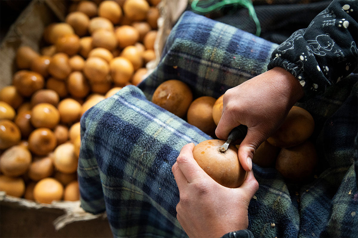 Andean master carvers travel to the gourd fields on the Peruvian northern coast to ensure and inspect the quality of the raw materials.