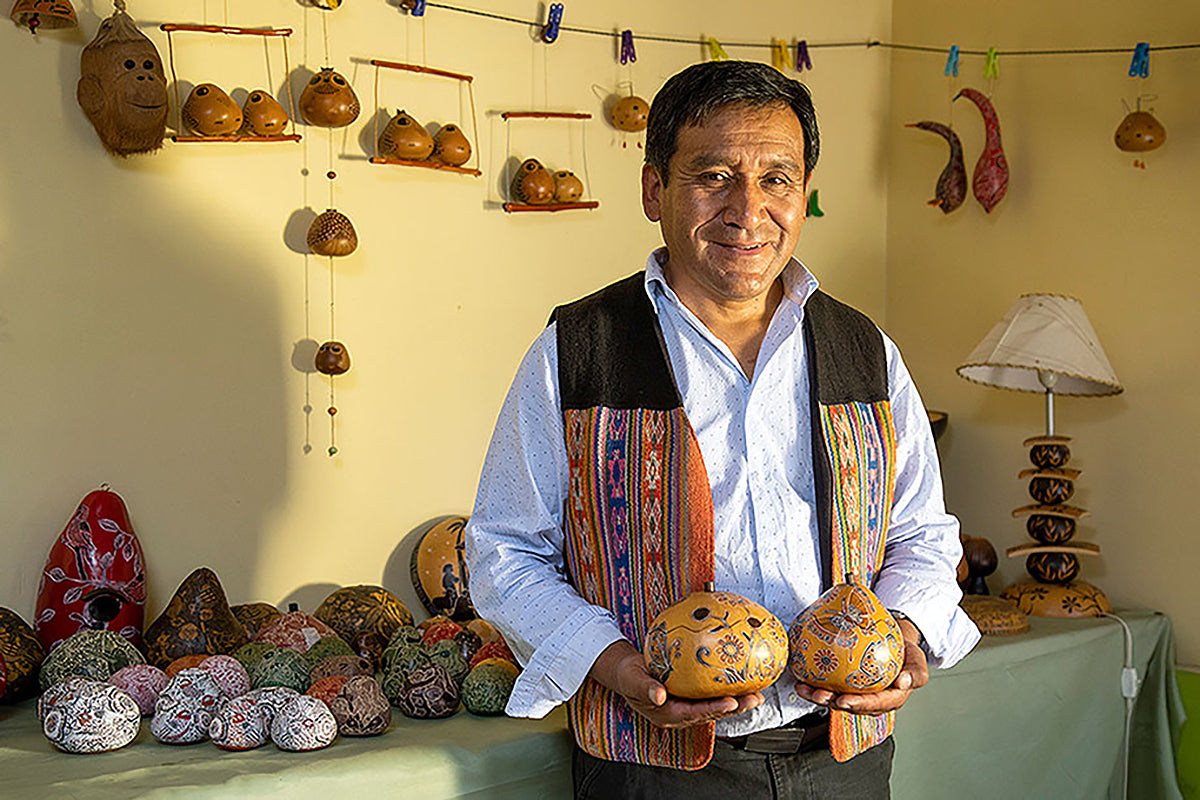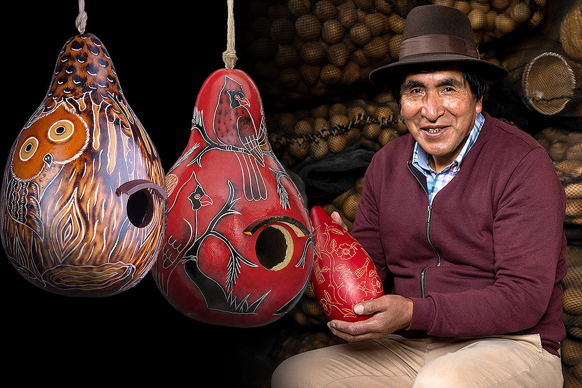 In the Andean mountains of Peru, in a tiny village of 50 families, fine gourd carving has been practiced for generations.
