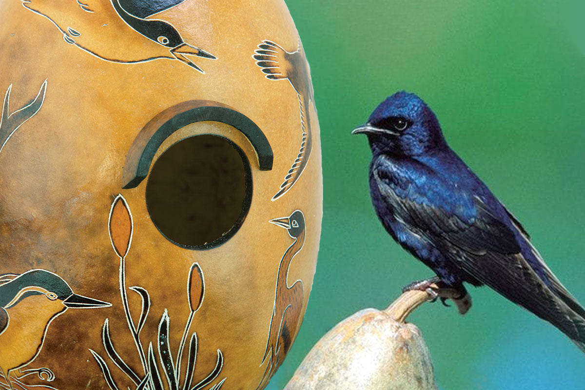 You can welcome these lovely birds into your yard with special purple martin houses, available at your local nature center. Hanging gourd birdhouses look great and may appeal to smaller birds. So close was their interaction that over multiple generations purplemartins have become almost domesticated. In the Eastern US, these birds still prefer and depend on manmade birdhouses.