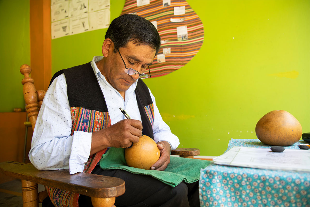 In Peru, storytelling through gourd carving has a long history. Archeologists found a gourd depicting deities over 4,000 years old. For centuries carvers have been serving their communities by recording special events such as religious celebrations, weddings and other traditions with intricate detail.