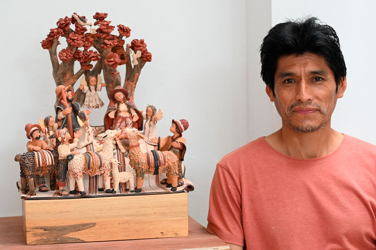 Antonio se destaca por sus bellas esculturas que emocionan y disfruta creando obras únicas para participar en concursos. Como autodidacta a Antonio le encanta explorar con nuevas técnicas, sin olvidarse de sus raíces tradicionales. Antonio se luce con sus delicados calados en arcilla y por sus vivos colores logrados con óxidos naturales que él mismo mezcla. En un futuro, Antonio está planeando crear en su pueblo natal de Quinua, una galería y centro de turismo vivencial donde sueña con ofrecer clases y compartir así su arte con los que quieran visitarlo.