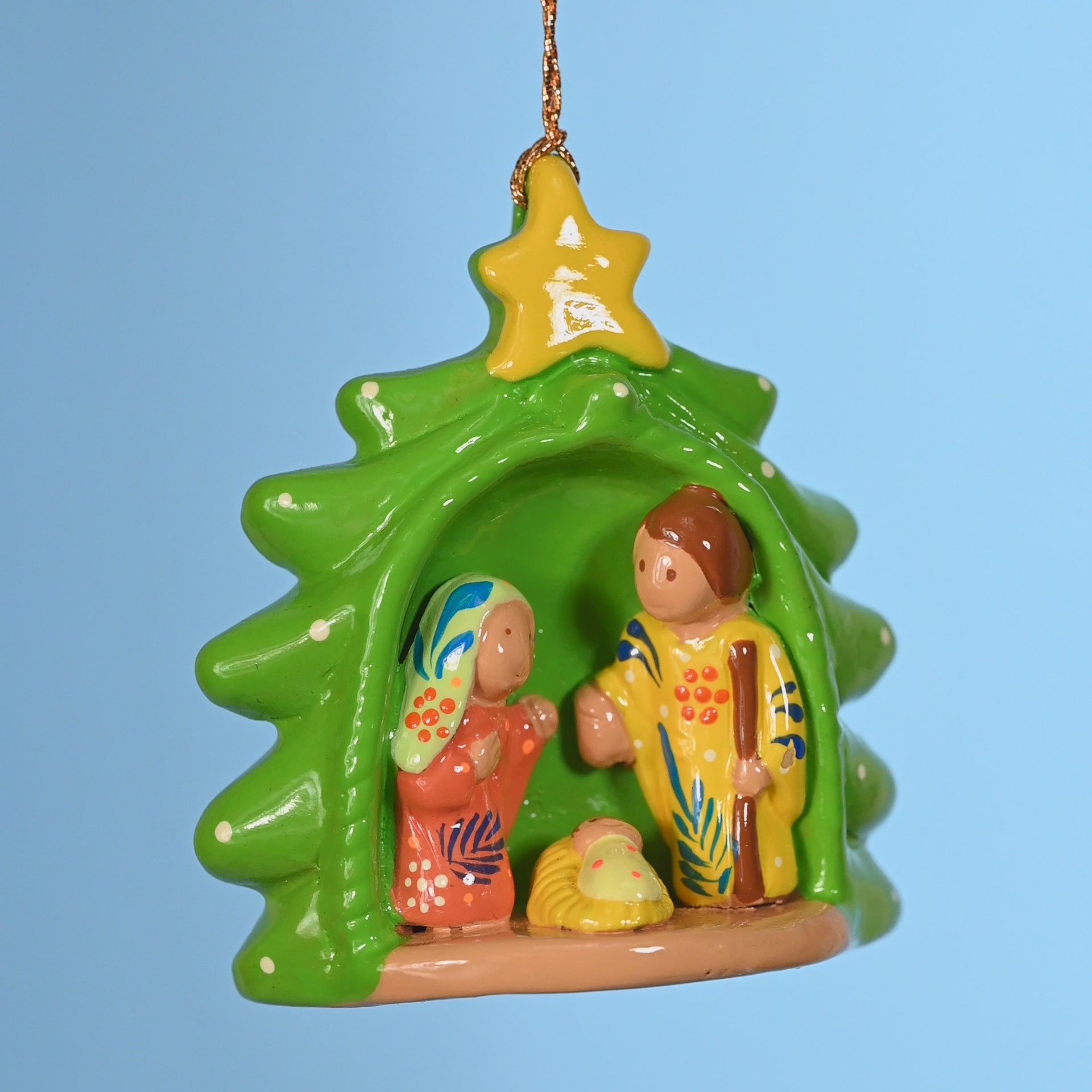 This Christmas tree nativity comes ready to hang but it may also stand by itself on a mantel or shelf. This Lucuma Designs' exclusive resulted from the collaboration with master ceramist Edwin Huasaca and his team in Lima, Peru.
